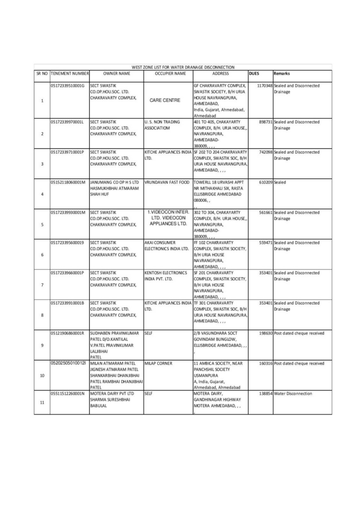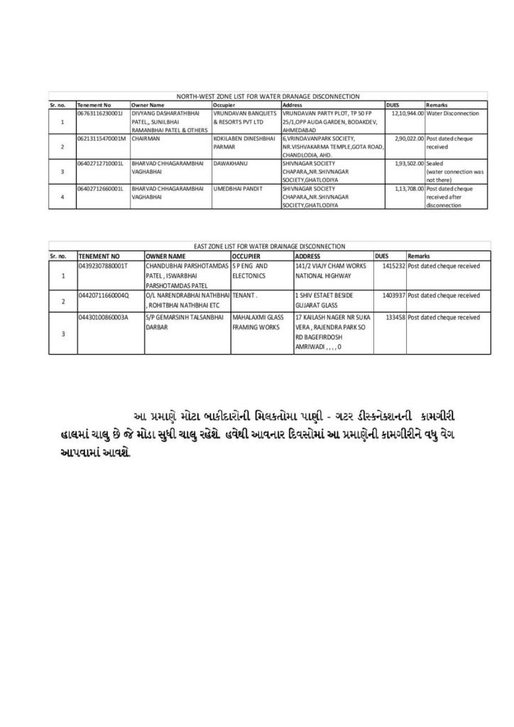 કઈ-કઈ મિલકતના પાણી-ડ્રેનેજના જોડાણ કાપવામા આવ્યા