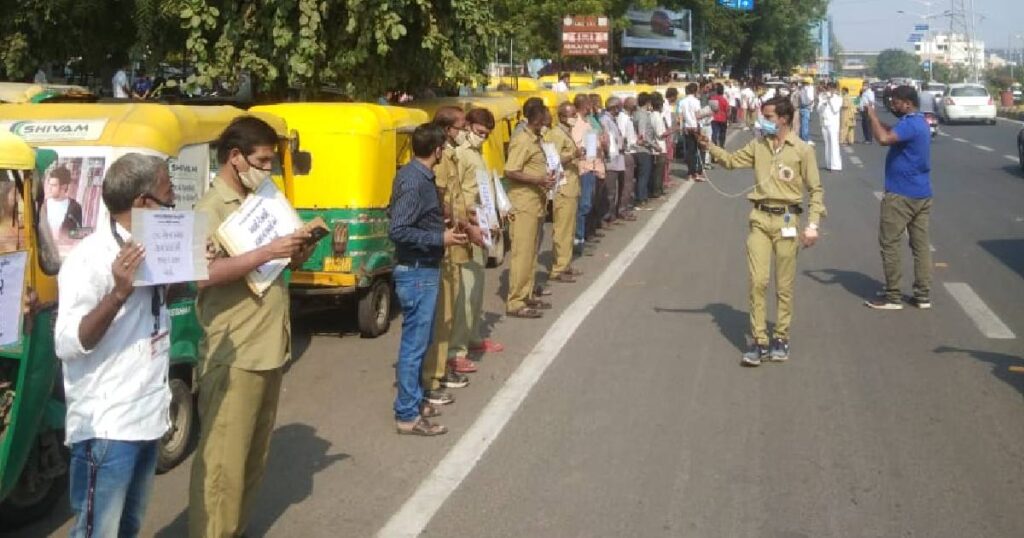 આજે અમદાવાદ કલેક્ટર ઓફિસ આગળ મોટી સંખ્યામાં રિક્ષા ચાલકો અને તેમના યુનિયનના લીડર્સએ એકત્રિત થઈને વિરોધ પ્રદર્શન કર્યું હતું. ત્યાર બાદ અમદાવાદ રિક્ષા ચાલક એકતા યુનિયનના પ્રેસિડેન્ટ વિજય મકવાણાએ કલેક્ટર સંદીપ સાગલેને પોતાની માગો સાથે આવેદન પત્ર આપ્યું હતું.
