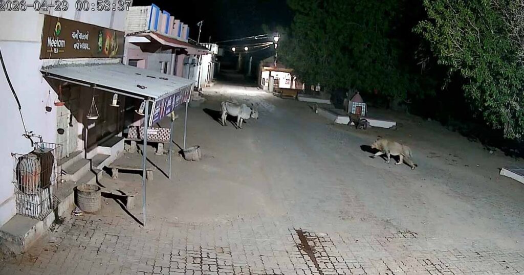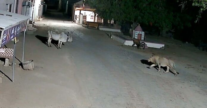 મળતી માહિતી મુજબ, ખોરાકની શોધમાં જંગલમાંથી ભટકીને એક સિંહ ઈંગોરાળા ગામની ગલીઓમાં આવી ચડ્યો હતો. વાઈરલ થયેલા સીસીટીવી ફૂટેજમાં જોવા મળે છે કે સિંહ આક્રમક રીતે ગલીમાં પ્રવેશ કરે છે અને ગાય પર જોરદાર હુમલો કરે છે. સિંહે પ્રથમ જોરદાર છલાંગ લગાવી ગાયને કાબૂમાં લીધી હતી અને ત્યારબાદ તેને જમીન પર પછાડી દીધું હતું. ગણતરીની મિનિટોમાં જ સિંહે ગાયનું મારણ કરી નાખ્યું હતું.