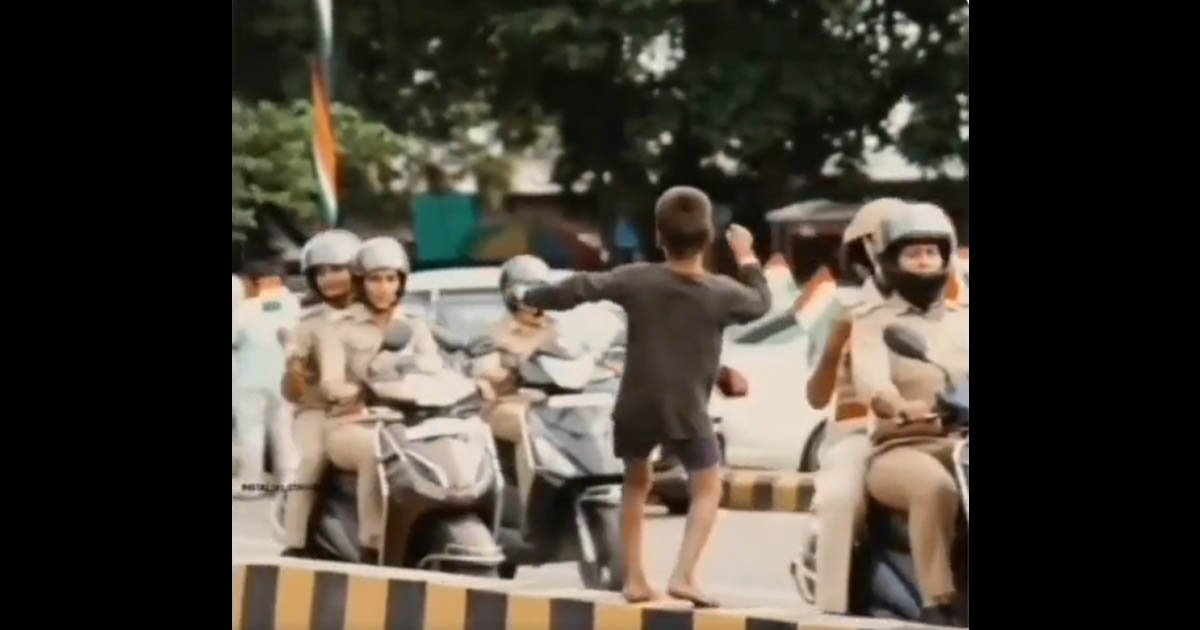 આ વીડિયો ઉત્તર પ્રદેશ કેડરના 2011 બેચના એક આઈપીએસ અધિકારી અજય પાલ શર્મા કે જેમને એન્કાઉન્ટર સ્પેશ્યાલિસ્ટ અને રિયલ સિંઘમ જેવા નામથી પણ લોકો જાણે છે તેમણે પોતાના સોશિયલ મીડિયા એકાઉન્ટમાં શેર કર્યો છે. તેમણે સોશિય્લ મીડિયા પર જે વીડિયો શેર કર્યો છે તેમાં જોઈ શકાય છે કે કેટલીક મહિલા પોલીસ કર્મચારીઓની ટુકડી ટુ-વ્હીલર પર રાષ્ટ્ર ધ્વજ સાથે નીકળી છે, દરમિયાન ડિવાઈડર પર ઊભા રહી એક બાળક કે જેણે ચડ્ડી અને ટીશર્ટ પહેરી છે તે આ માહોલ જોઈ અત્યંત ખુશ થઈ જાયે છે અને તે ત્યાં તેમની સામે નાચવા લાગે છે. તેમણે આ પોસ્ટ મુકતા લખ્યું છે કે દિલને સ્પર્શી જનારો વીડિયો, જય હિન્દ. તેમણે શેર કરેલા આ વીડિયોને આ લખાય છે ત્યાં સુધી 1.26 લાખ વ્યૂ મળી ચુક્યા છે. 580થી વધુ વખત તેને રિટ્વીટ કરાયો છે અને 6000થી વધુ લાઈક્સ મળ્યા છે.