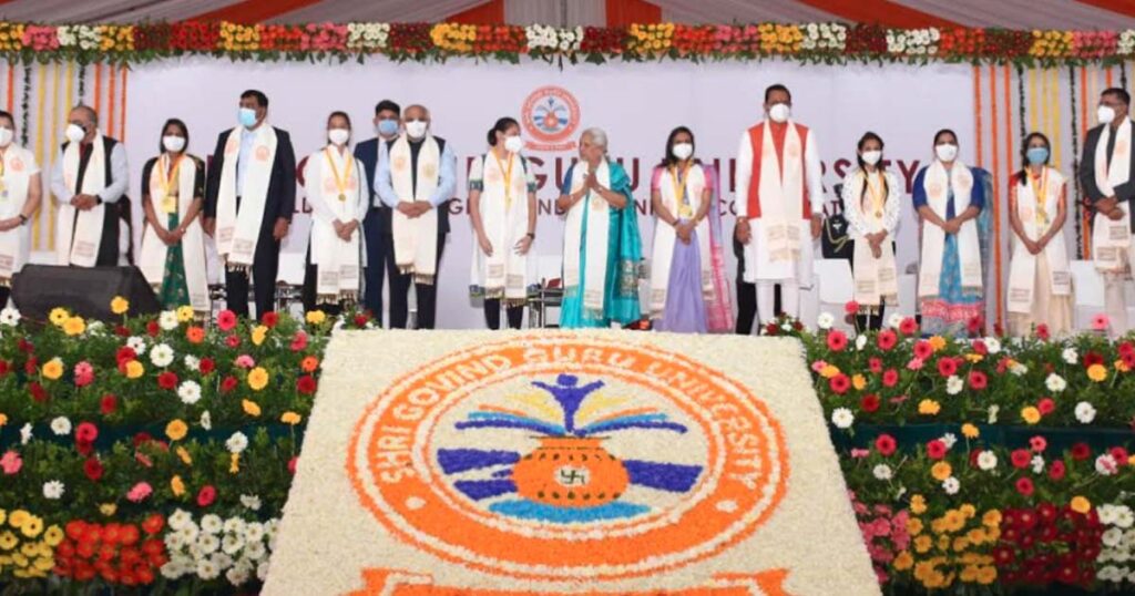 નવજીવન પંચમહાલઃ પંચમહાલ જીલ્લાના ગોધરા ખાતે આવેલી શ્રી ગોવિંદગુરૂ યુનિવર્સિટીના તૃતિય પદવીદાન અને સુવર્ણચંદ્રક પદવીદાન સમારોહમાં ઉત્તરપ્રદેશના રાજ્યપાલ આનંદીબેન પટેલ ખાસ ઉપસ્થિત રહ્યા હતા. ૧૦ કરોડના ખર્ચે યુનિવર્સિટી કેમ્પસમાં તૈયાર કરવામા આવેલા સેન્ટ્રલ ઓફ એક્સલન્સ ભવનનું પણ ઈ-ખાતમુર્હત કર્યુ હતું. સાથે વિવિધ વિદ્યાશાખામાં અભ્યાસ કરનારા ૧૧૨ વિદ્યાર્થીઓને સુર્વણચંદ્રક એનાયત કરવામા આવ્યો હતો.