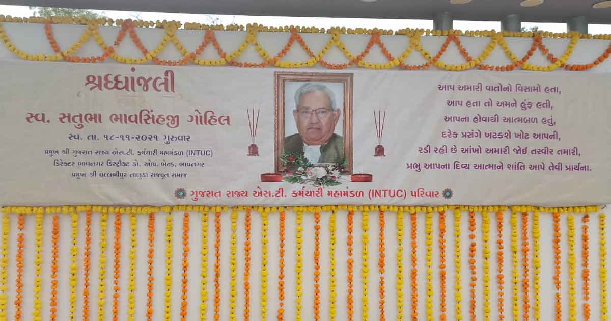 GSRTC કર્મચારી મહામંડળના પૂર્વ પ્રેસી. સતુભા ગોહિલને અમદાવાદના નરોડામાં કર્મચારીઓ દ્વારા ભાવભીની શ્રદ્ધાંજલી અપાઈ