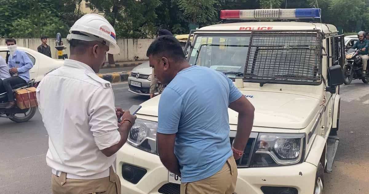 DGP દ્વારા પોલીસકર્મીઓને ટ્રાફિક નિયમન કરવા માટે નિર્દેશ આપવામાં આવ્યો હતો. જેને લઈને આજે અમદાવાદ ટ્રાફિક પોલીસ (Ahmedabad Traffic Police) એક્શનમાં જોવા મળી રહી છે. પોલીસકર્મીઓને ટ્રાફિકનું પાલન કરાવા માટે અમદાવાદ પોલીસ હેડ ક્વોટર્સ પાસે ટ્રાફિક ડ્રાઈવનું આયોજન કરવામાં આવ્યું હતું. જેમાં ટ્રાફિક ACP અશોક રાઠવા અને તેમની ટીમ દ્વારા ડ્રાઈવ યોજવામાં આવી હતી. આ ડ્રાઈવમાં નંબર પ્લેટ વગરના વાહન, પોલીસનું લખાણ, કાળા કાચ, સી બેલ્ટ, હેલ્મેટ બાબતે ટ્રાફિકના નિયમો તોડતા પોલીકકર્મીઓને ઝડપી પાડીને દંડ વસુલવામાં આવ્યો હતો. આ ડ્રાઈવમાં પોલીસના સરકારી વાહનમાં સીટ બેલ્ટ ન પહેરનારા પોલીસકર્મીને પણ દંડ આપવામાં આવ્યો હતો.