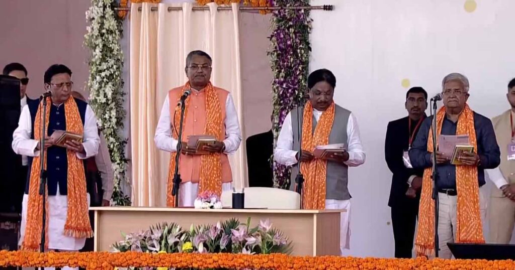 નવજીવન ન્યૂઝ. ગાંધીનગરઃ ગુજરાત વિધાનસભાની ચૂંટણીમાં ભવ્ય જીત બાદ આજે ભાજપ ફરી એકવાર સરકાર બનાવવા માટે જઈ રહી છે. ગાંધીનગરના સચિવાલયના હેલિપેડ ગ્રાઉન્ડ પર આજે શપથવિધિ સમારોહનું આયોજન કરવામાં આવ્યું છે. આગામી મુખ્યમંત્રી તરીકે ભૂપેન્દ્ર પટેલ શપથ લેશે. આ સાથે મંત્રીમંડળના સભ્યો પણ શપથ લીધા હતા. શપથવિધિ સમારંભને ભવ્ય બનાવવા માટે 10 હજારથી વધુ લોકોને આમંત્રણ આપવામાં આવ્યું છે.