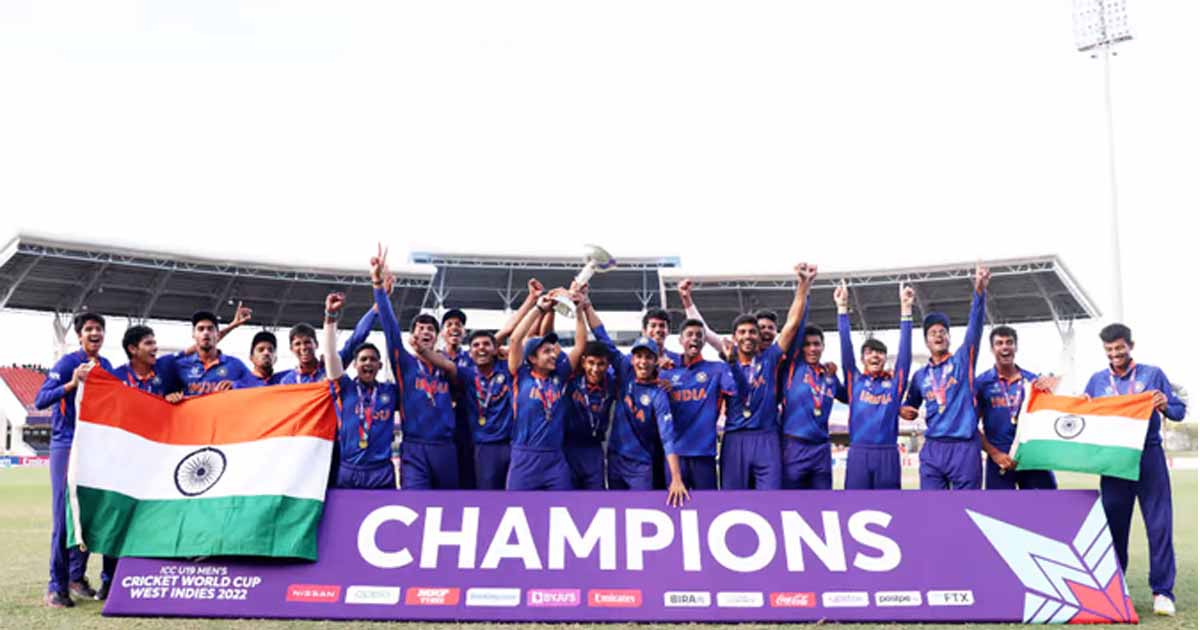 ગ્રુપ સ્ટેજમાં ટીમ ઈન્ડિયાએ દક્ષિણ આફ્રિકાને 45 રને, આયર્લેન્ડને 174 રને અને યુગાન્ડાને 326 રને હરાવ્યું હતું. અગાઉ (2020) ચેમ્પિયન બાંગ્લાદેશે (5 વિકેટે) ટીમને ક્વાર્ટર ફાઇનલમાં હરાવ્યું. આ પછી ભારતે સેમીફાઈનલમાં ઓસ્ટ્રેલિયા સામે 96 રને એકતરફી જીત મેળવી હતી. ભારતીય ક્રિકેટ કંટ્રોલ બોર્ડ (BCCI) અંડર-19 વર્લ્ડ કપ જીતનાર દરેક ખેલાડીને 40 લાખ રૂપિયાનું ઈનામ આપશે. સાથે જ દરેક સપોર્ટ સ્ટાફને 25 લાખ રૂપિયા મળશે. આ ટૂર્નામેન્ટમાં ભારતીય ટીમના મુખ્ય કોચ હૃષિકેશ કાનિટકર હતા. બીસીસીઆઈના સેક્રેટરી જય શાહે આની જાહેરાત કરી છે. તેણે કહ્યું- હું આ એવોર્ડ આપીને ખૂબ જ ખુશ છું. ફાઇનલમાં ટીમનું પ્રદર્શન શાનદાર રહ્યું હતું. તમે ભારતને ગૌરવ અપાવ્યું છે.