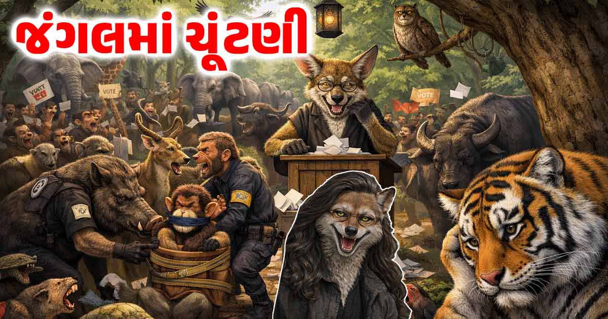 એક બાજુ ઉમેદવારોમાં વાનર ટોળકી હતી, હરણ ટોળકી હતી, શિયાળોની ટોળકી હતી, જંગલી કૂતરાઓની ટોળકી હતી. આ લોકો ટોળામાં લડતા હતા. ત્યાં તેમને અત્યાર સુધીના ચૂંટણીના આંકડાઓ જોઈને લાગ્યું કે આપણે અપક્ષમાં પણ કેટલાક ઉમેદવારોને રાખવા જેથી વોટ તૂટી જાય અને આપણે સત્તાને પામીએ. સત્તાને પામીએ ત્યાં સુધી તો ઠીક આપણે પ્રાણીઓનું રક્ષણ કરતી સુંવર ગેંગને પણ કંટ્રોલમાં રાખી શકીએ. અગાઉથી જ જંગલ પર રાજ કરતી શિયાળ ટોળકીએ એક મિટિંગ રાખી જેમાં વાઘ પણ હતો, સુંવરો પણ હતા વાનર ટોળકી પણ હતી, હરણ ટોળકી પણ હતી. મતલબ કે આ ટોળકીઓના નેતા. જંગલી કૂતરાઓને પણ આમંત્રણ હતું. શિયાળ ટોળકીનો જંગલ પર આમ પણ ઘણો દબદબો પહેલાથી હતો. સુંવરો અને વાઘ તો પડતો બોલ ઝિલતા, બોલ છોડો… બોલતા બોલતા થુંક પડે તો તે પણ પ્રસાદ તરીકે ઝીલી લેતા. આ મિટિંગથી જંગલના બીજા પ્રાણીઓ બિલકુલ અજાણ હતા.