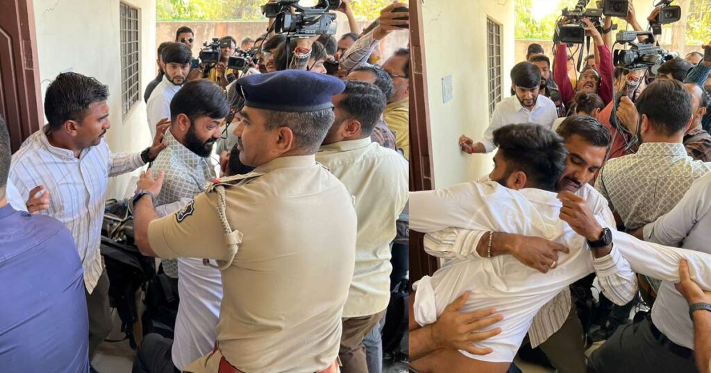 NSUI અને કોંગ્રેસી કાર્યકરોએ રાજકોટ સ્થિત FRC કમિટિની કચેરીની તાળાબંધી ઉગ્ર વિરોધ કર્યો હતો. સાથે જ તેમણે FRC પર આરોપ કર્યા હતા કે સૌરાષ્ટ્ર ઝોનની 1500થી વધારે શાળાનું એક જ કમિટિ ઓડિટ કઈ રીતે કરી શકે? જે શાળાઓ ફી વધારાની અરજી કરે અને સંચાલકો અપેક્ષિત ફીની મંજૂરી માગે તે તમામ કેસમાં FRC મંજૂરી આપી દે છે. રોહિત રાજપૂતે ઉમેર્યું હતું કે, વર્ષ 2017થી 2023 સુધીમાં નામાંકિત ખાનગી શાળાઓની ફી FRCએ મંજૂર કરી છે તેમાંની મોટાભાગની શાળાઓ પોતે સોગંદનામા પર ખોટમાં સંસ્થા ચાલતી હોવાનું જણાવે છે. છતાં કોઈ પણ તપાસ વગર FRCએ તેમની વાતને સ્વિકારી લઈ લોલમ લોલ કામગીરી કરી છે.