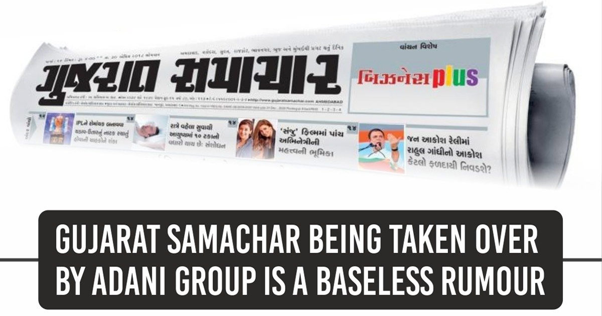 Rumours are being spread about @gujaratsamachar being taken over by Adanis. I know Guj Samachar management well & they have no plans to sell newspaper to any corporate group, be it Adani or Reliance. But, I am surprised that such baseless messages are spreading unnecessarily. pic.twitter.com/DF10hE6KRu