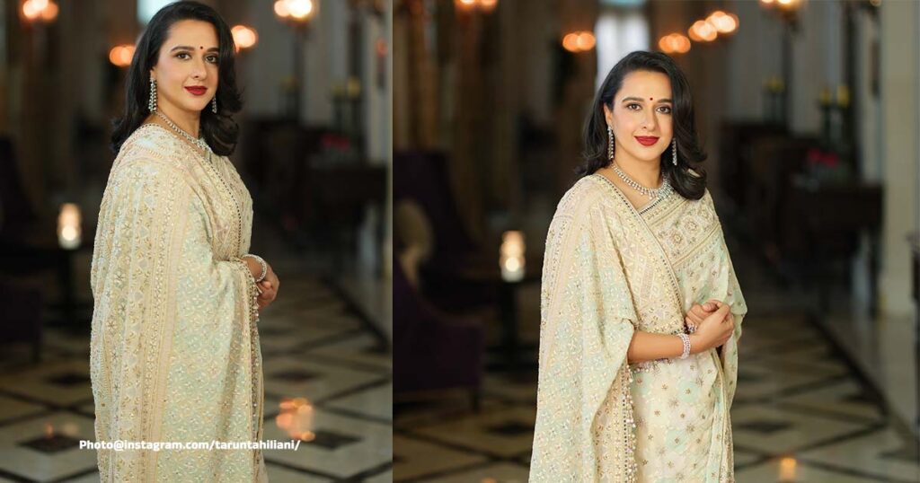 ફોર્બ્સની યાદીમાં દેશની સુંદર રાણીઓમાં સ્થાન મેળવનાર રાધિકારાજે ગાયકવાડ પોતાના પરંપરાગત અને હેરિટેજ લુક માટે જાણીતી છે. આ વખતે પહેરેલી ચિકનકારી સાડી પ્રખ્યાત ડિઝાઇનર તરુણ તહિલિયાની દ્વારા ડિઝાઇન કરવામાં આવી છે, જેમાં ભારતીય હસ્તકલા અને શાહી વારસાની ઝલક સ્પષ્ટ દેખાઈ આવે છે. આમ તો વડોદરાની રાણી પોતાના લૂક્સને કારણે હંમેશા લોકોના દિલ જીતી લે છે, પણ આ તેમની સાડીએ વર્ષો જુની એક સુંદરતાને વધુ ઘાટો રંગ આપ્યો છે. (ઈસ્ટાગ્રામ- @taruntahiliani & radhikaraje)