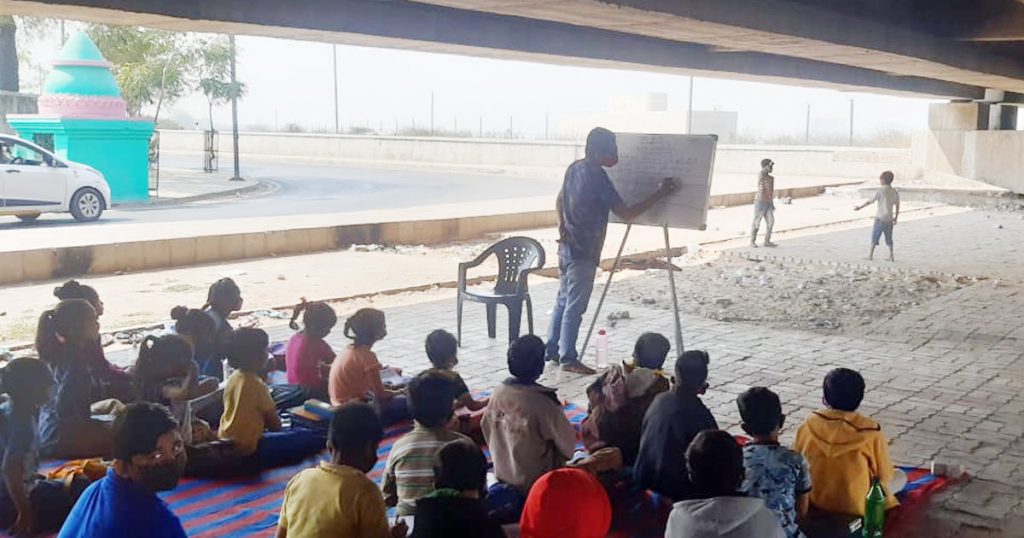 વધતાં જતાં શિક્ષણના દરની સમસ્યા આજે સમાજ સામે માથું ઉંચકીને ઊભી છે ત્યારે અમદાવાદની સાબરમતી નદી પર આવેલા આંબેડકર બ્રીજની નીચે એક મધ્યમવર્ગી યુવાન શૈક્ષણિક ક્ષેત્રે એક નવો દીપ પ્રગટાવી રહ્યો છે.