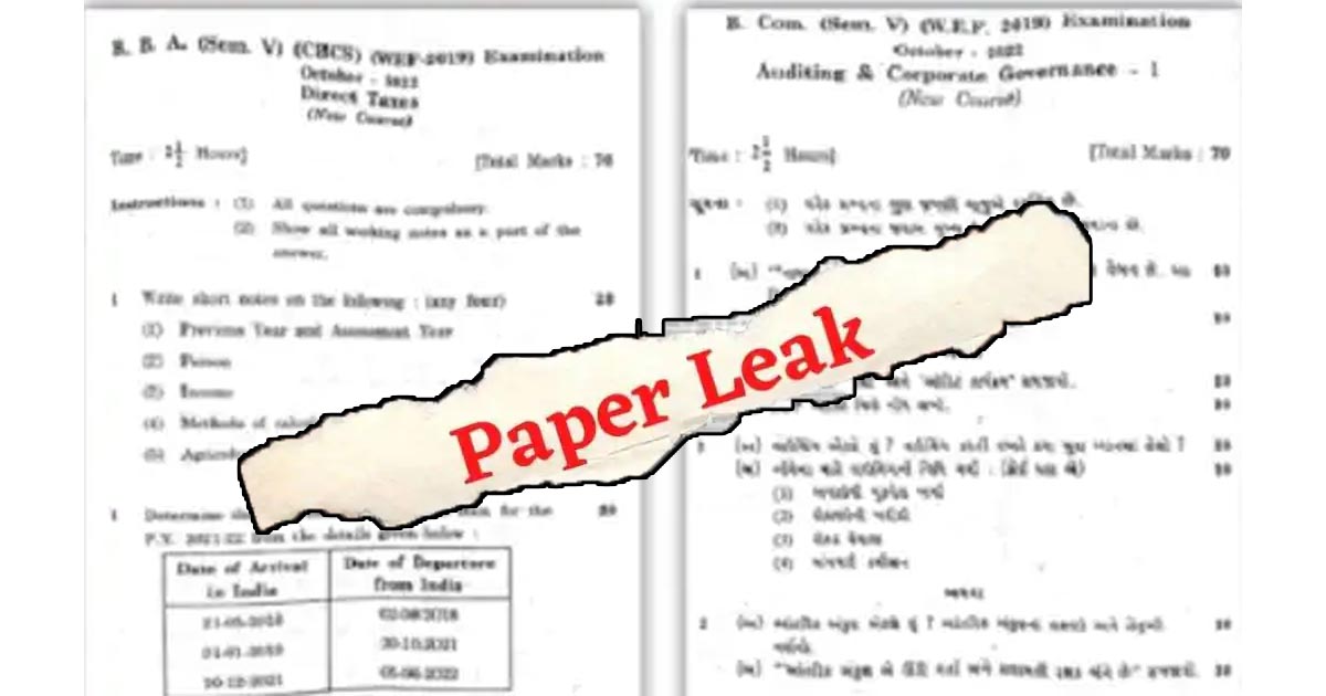 સૌરાષ્ટ્ર યુનિવર્સિટીના બીકોમ અને બીબીએના સેમેસ્ટર- 5 ના પરીક્ષા પહેલા જ પેપર લીક થઈ ગયા હોવાનો ઘટસ્ફોટ થવા પામ્યો છે. તંત્રની બેદરકારીને લઈ લોકોમાં અને વિદ્યાર્થીઓમાં નારાજગી જોવા મળી રહી છે. બીબીએ સેમેસ્ટર- 5ના ડાયરેક્ટ ટેક્સેસન વિષયનું અને બીકોમના સેમેસ્ટર- 5ના ઓડિટિંગ એન્ડ કોર્પોરેટ ગવર્નન્સનું એક્ઝામ પેપર પહેલા જ બહાર આવી ગયું હતું. આ કારણે તેના ગંભીર પરિણામ ભોગવવાનો વારો આવશે તેવું જણાઈ રહ્યું છે.
